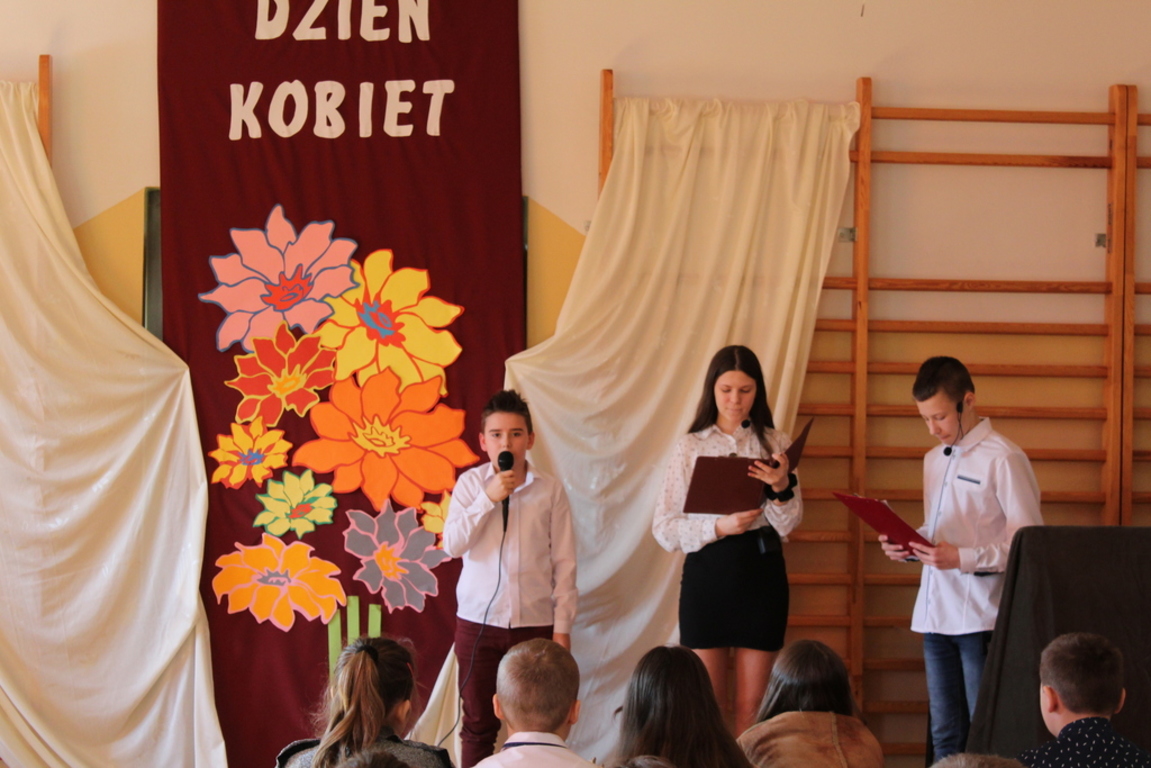 JAK CO ROKU W NASZEJ SZKOLE OBCHODZILIŚMY DZIEŃ KOBIET. Z TEJ OKAZJI ZOSTAŁA PRZYGOTOWANA AKDEMIA PRZEZ UCZNIÓW NASZEJ SZKOŁY POD KIEROWNICTWEM PANA GRZEGORZA PRZYWARY.