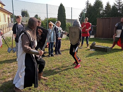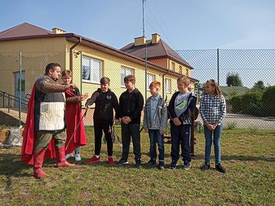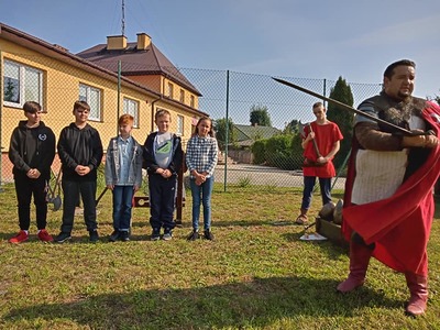 Grupa Artystyczna Rekonstrukto zaprosiła uczniów naszej szkoły na pokaz historyczny ,, Życie i kultura w średniowieczu"