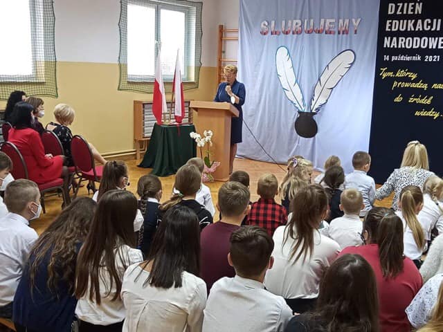 Dzisiejsze Święto Edukacji Narodowej zgromadziło naszą społeczność szkolną na uroczystym apelu z życzeniami dla pedagogów jak i było okazją do przyjęcia w poczet społeczności szkolnej uczniów klasy 1 i 0.