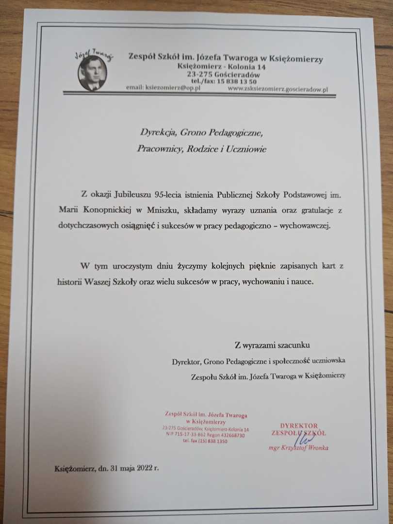 Wyrażamy podziękowania wszystkim zaproszonym gościom za udział w Jubileuszu 95- lecia szkoły, za wszystkie gratulacje i wyrazy uznania jakie otrzymaliśmy.