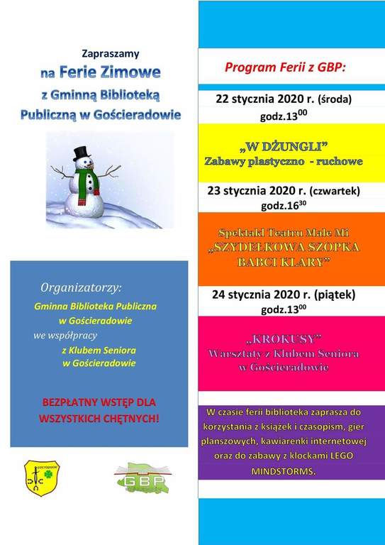 FERIE ZIMOWE Z BIBLIOTEKĄ PUBLICZNĄ W GOŚCIERADOWIE